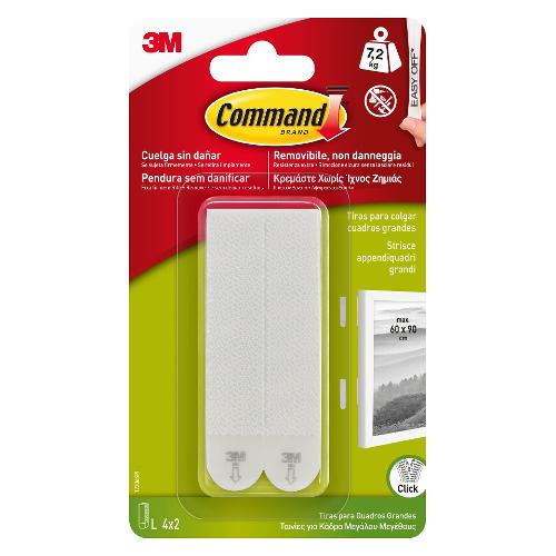 Rendi rapida e veloce l'applicazione delle decorazioni con strisce appendiquadri grandi command™. Puoi appendere grandi stampe incorniciate senza necessità di utensili elettrici. Le nostre strisce grandi si attaccano l'una con l'altra in modo sicuro per reggere cornici fino a un peso di 7,2 kg, poi, quando decidi di cambiare, è possibile rimuoverle facilmente senza danneggiare la superficie sottostante. Nessun foro, nessun danno alle pareti verniciate, nessun residuo di colla. Le possibilità decorative sono praticamente infinite, si tratta di un'eccezionale soluzione che non richiede l'uso di chiodi, per case in affitto quando si teme di provocare danni alle pareti. Aderiscono saldamente a varie superfici tra cui le pareti piene, cave e verniciate. Le strisce appendiquadri grandi reggono la maggior parte delle cornici di dimensioni fino a 60 cm x 90 cm.