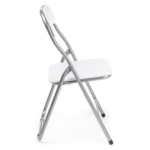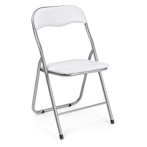 Struttura in acciaio verniciato a polvere silver (tubo Ø 22 mm). Seduta e schienale imbottiti e rivestiti in PVC opaco. Seduta pieghevole