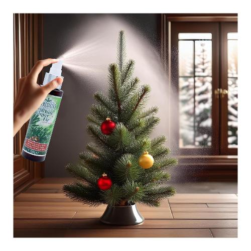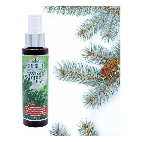Profumo spray per composizioni secche natalizie o alberi di natale artificiali con fragranza "abete d'inverno bianco". Profumo di lunga durata fino a 30 giorni.