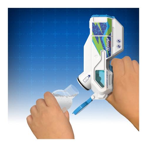 Versione mini! Porta la sfida con te con il nuovo mini blaster con potenza di getto fino a 5 metri! Oltre al serbatoio interno, puoi aumentare lìesperienza di gioco con il serbatoio extra da 200 ml
