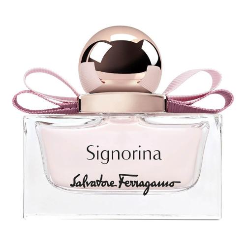 Signorina eau de parfum esprime l'essenza di una giovane donna chic con un'allure inconfondibile, sofisticata, fresca e delicatamente audace. Un flacone dalla forma iconica e chic che celebra la giovana donna salvatore ferragamo. L'iconico fiocco vara di salvatore ferragamo in gros grain è reinterpretato in due vivaci tonalità di rosa. Le note effervescenti e vivaci del ribes con un accento speziato di fresco pepe rosa donano gioiosità alla fragranza. Nel cuore la freschezza del gelsomino e l’eleganza della peonia incontrano la raffinata femminilità della rosa. Nel fondo la dolcezza della pannacotta si unisce alle note di musk e intriganti note boisée di patchouli. Famiglia olfattiva: floreale, fruttata nota di testa: pepe rosa, ribes rosso nota di cuore: gelsomino, rosa, peonia nota di fondo: muschio, patchouli, panna cotta
