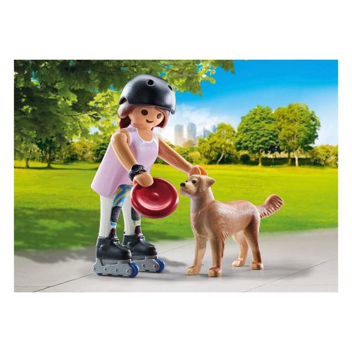 Preparatevi a una giornata di divertimento e movimento con il playset golden retriever con personaggio di playmobil! Guardate come l'atletica pattinatrice mostra le sue abilità mentre il suo giocoso cagnolino recupera il frisbee. Questa dinamica coppia è ricca di dettagli realistici: rimuovete i pattini, il casco e l'orologio da polso della pattinatrice per un gioco ancora più fantasioso. La testa mobile del retriever gli permette di unirsi all'azione, sia che stia giocando a prendere il pallone, sia che trotterelli felicemente con il guinzaglio e la pettorina.