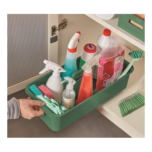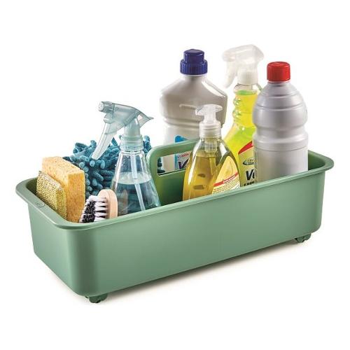 Organizer sottolavello cucina: per riporre tutti quei prodotti di detergenza che ti serve avere a portata di mano. Dotato di una pratica maniglia e di 4 ruote sul fondo, è un contenitore pratico da movimentare e spostare. Organizer in lavanderia, accanto a lavatrice e asciugatrice. Dove stiri, per avere tutti i prodotti che ti servono. Lo usi in garage con gli accessori per la pulizia dell'auto o i prodotti per orto e giardino, i prodotti per la toilette del tuo animale da compagnia. Maneggevole e resistente si adatta a tutte le necessità e attività. La plastica spessa e resistente, reciclata, lo rende resistente a urti e cadute.