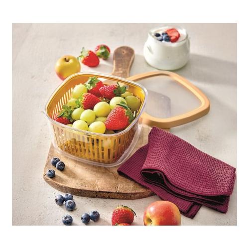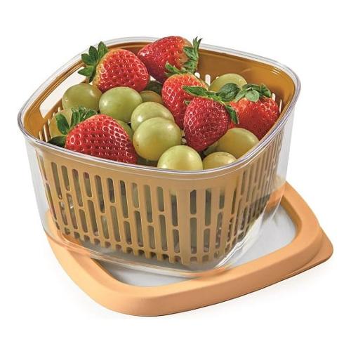 Contenitore da 1,5 litri, adatto alla conservazione di frutta e verdura, intera o a pezzi. Il cestello forato rimovibile lo rende ideale anche per lavare e scolare piccole quantità di alimenti; consente all’aria di circolare intorno al cibo, garantendo una migliore conservazione dello stesso. Il coperchio con morbida guarnizione, garantisce una perfetta conservazione della freschezza dei cibi. Dotato di aletta laterale per facilitare l’apertura. Il coperchio piatto lo rende facile da impilare sui ripiani della dispensa come su quelli del frigorifero, o nei cassetti del freezer.