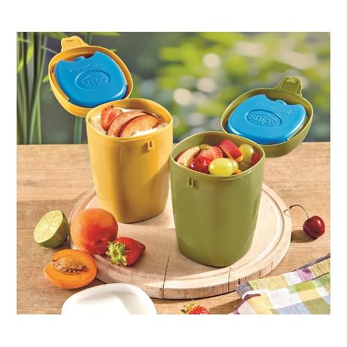 Contenitore refrigerato per conservare e trasportare yogurt, dessert, frutta, macedonia e pappe conservandole fresche per oltre due ore.
