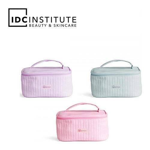 Beauty case colorato con ampio scomparto principale e manico superiore per una comoda portabilità.