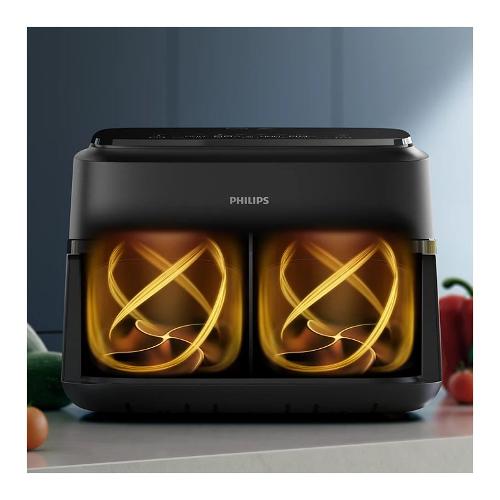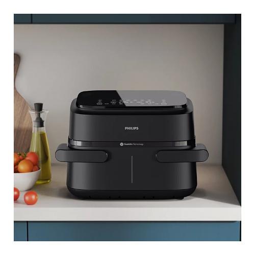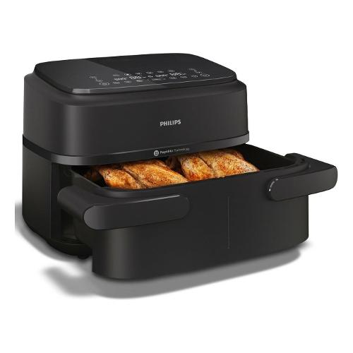 Puoi passare facilmente dal doppio cestello a un unico grande vassoio, usando il divisore rimovibile. Prepara qualunque cosa, da un pasto di soli due ingredienti a un grosso arrosto, sempre croccante ma tenero, grazie alla nostra tecnologia RapidAir. Ricette gustose su misura per il tuo airfryer nella nostra app HomeID.