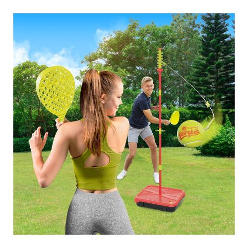 Una pallina da tennis legata ad un filo è agganciata ad una spirale posta in cima all'asta di una base zavorrabile. Con le 2 racchette in dotazione due giocatori si sfidano a colpire la palla lateralmente facendola piroettare intorno all'asta e cercando di raggiungere la cima o la base della spirale Lo swingball classic all surface, un successo per le famiglie da generazioni. La base per tutte le superfici ha piedini di bilanciamento per un gioco stabile e si trasforma in una comoda custodia per riporre tutto in modo da poterlo portare ovunque. Swingball non è solo per il cortile; la base per tutte le superfici ti consente di giocare ovunque su qualsiasi superficie. Basta riempire la base con sabbia o acqua e sei pronto per partire.