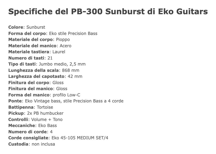 Basso elettrico 4 corde della serie "Tribute 300". Ispirato al leggendario Precision Bass e caratterizzato da hardware vintage, presenta corpo in Pioppo, manico in Acero e tastiera 21 tasti in Laurel. Monta due pickup PB humbucker con controlli di Volume e tono. Ideale per il bassista che desidera uno strumento affidabile, versatile e performante.