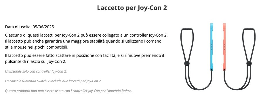 Ciascuno di questi laccetti per Joy-Con 2 può essere collegato a un controller Joy-Con 2. Il laccetto può anche garantire una maggiore stabilità quando si utilizzano i comandi stile mouse nei giochi compatibili. Il laccetto può essere fatto scattare in posizione con facilità, e si rimuove premendo il pulsante di rilascio sul Joy-Con 2