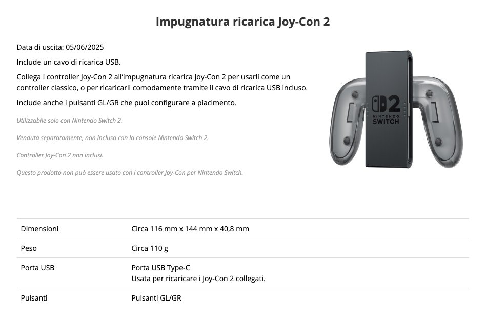 Collega i controller Joy-Con 2 all’impugnatura ricarica Joy-Con 2 per usarli come un controller classico, o per ricaricarli comodamente tramite il cavo di ricarica USB incluso.