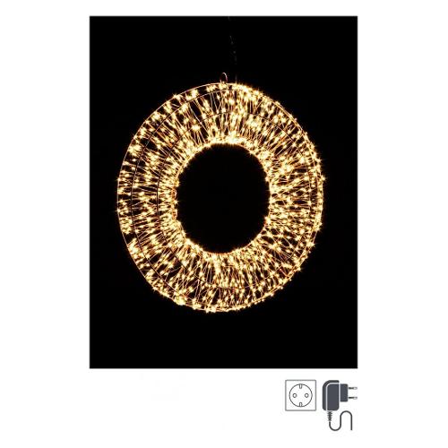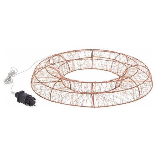 Corona 1140microled. Diametro 50cm. Luce classic. Struttura in colore copper, filo copper. Lunghezza cavo di alimentazione 3m, distanza led 5cm. Dotato di presa schuko. Solo per uso interno. Con trasformatore 12v/9w.