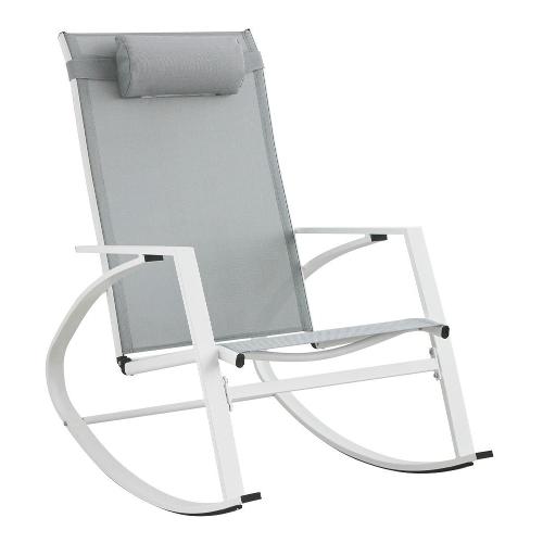 Struttura in acciaio (trattato per esterno tramite fosfatazione) verniciato a polvere (Poliestere), seduta e schienale in Textilene 2x1 (poggiatesta imbottito). Viteria in acciaio galvanizzato