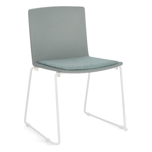 Seduta in plastica (pp). Cuscinetto seduta in Poliestere. Gambe in acciaio verniciate a polvere epossidica