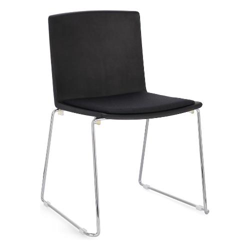 Seduta in plastica (pp). Cuscinetto seduta in Poliestere. Gambe in acciaio cromate