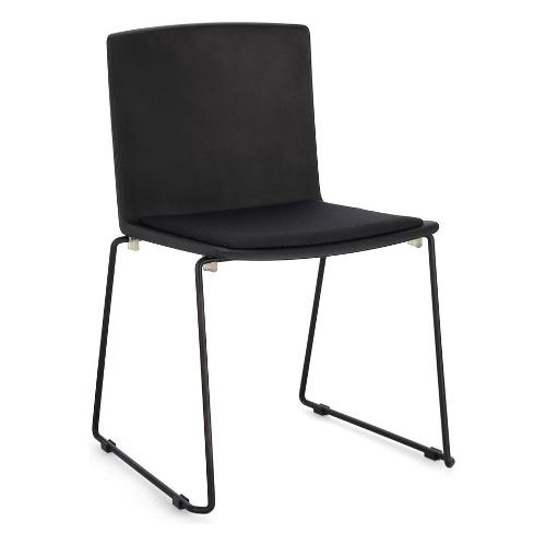 Seduta in plastica (pp). Cuscinetto seduta in Poliestere. Gambe in acciaio verniciate a polvere epossidica