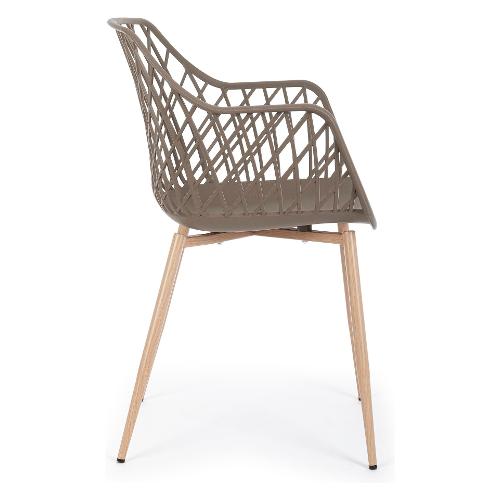 Gambe in acciaio verniciate effetto legno naturale. Seduta in plastica (pp)