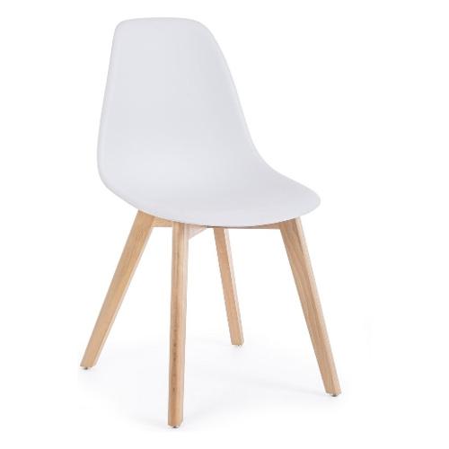 Gambe in legno di faggio. Seduta e schienale in plastica (pp)