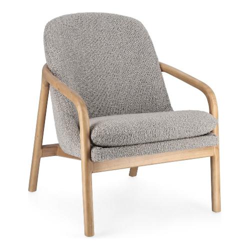 Struttura in Rubberwood. Seduta in legno di pino e compensato. Rivestimento in Poliestere effetto bouclé. Densità imbottitura in schiuma poliuretanica 24 kg/m3. Cuscino seduta sfoderabile