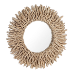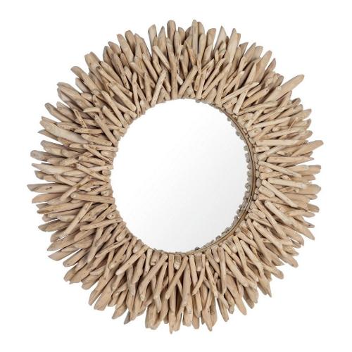 Rami di teak con finitura naturale. Misura specchio: Ø 60