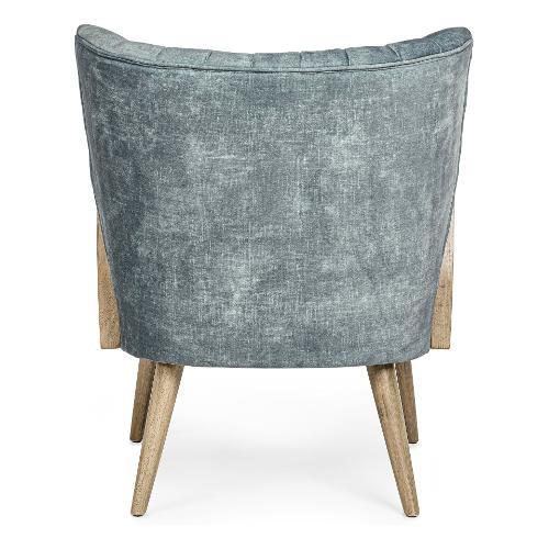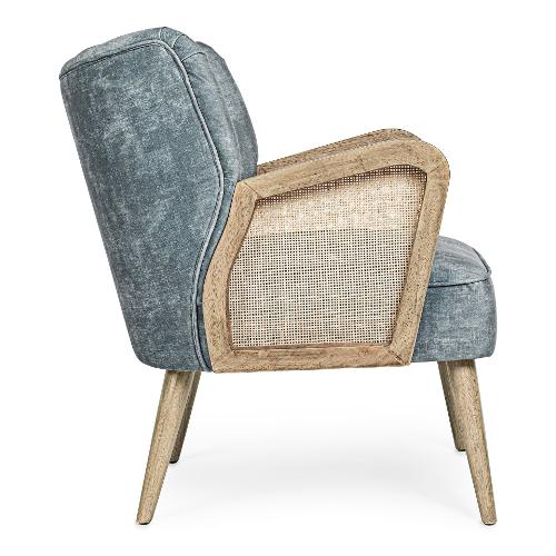 Struttura in legno di pino e compensato. Gambe in Rubberwood. Braccioli con inserti in Rattan. Rivestimento in Poliestere. Densità imbottitura in schiuma poliuretanica 24 kg/m3. Non sfoderabile