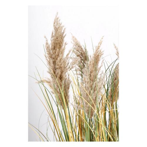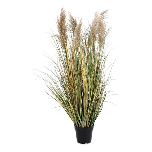 Ciuffi naturali, stelo in metallo e pvc, foglie in pvc, vaso in plastica contenuto vaso in cemento. Ø80x120h