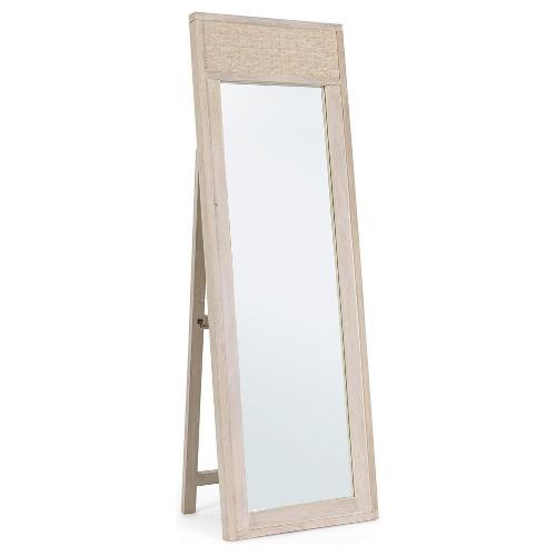 Struttura in legno di mango, schienale in MDF. Frontale in Rattan. Verniciatura a base di nitrocellulosa con decapatura bianca