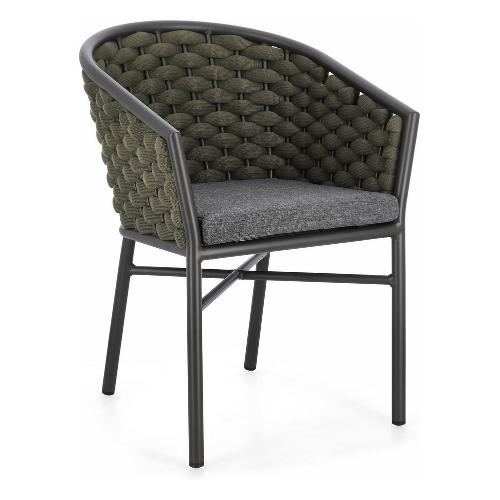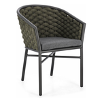 Struttura in alluminio verniciata a polvere (Poliestere). Intreccio per esterno in corda Olefin (Polipropilene) imbottita in gomma (polietilene). Cuscini sfoderabili in tessuto idrorepellente 100% Polipropilene