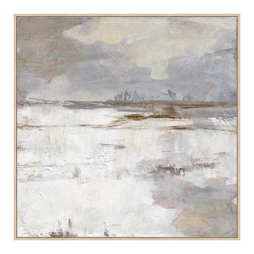 Stampa su tela dipinta a mano con applicazioni fogli dorati. Telaio in MDF