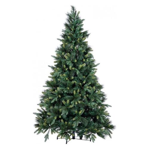 Albero effetto germogliato, struttura e base in metallo. Aghi in materiale pe stampato ad iniezione e pvc. Rami effetto spazzola che riproducono la struttura degli aghi di pino. Apertura facilitata ad ombrello. Cartone effetto legno con etichetta colorata