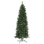 Albero slim. Struttura dei rami e base in metallo. Materiale degli aghi pvc. Apertura facilitata ad ombrello. Cartone effetto legno con etichetta colorata