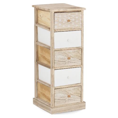 FINNLEY Cassettiera 5 Cassetti Legno e Bianco (40cm)