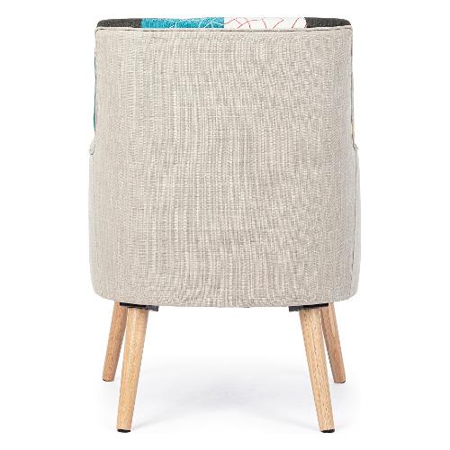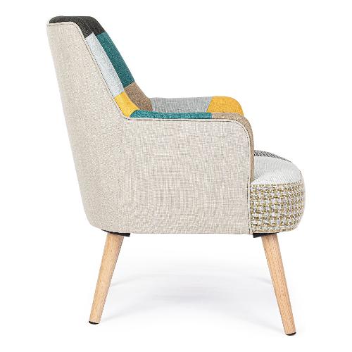 Struttura in Rubberwood e compensato, verniciatura a base di nitrocellulosa. Rivestimento in Poliestere con lavorazione patchwork. Densità imbottitura seduta 36kg/m3
