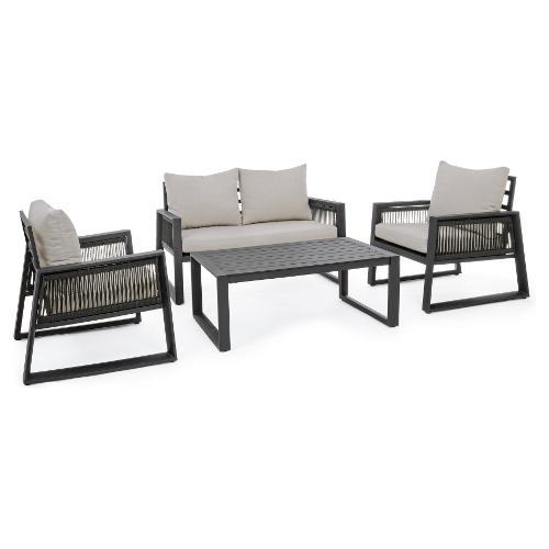 Set da esterno alluminio, textilene, poliestere CAPTIVA 4 posti Antracite 0662596