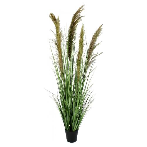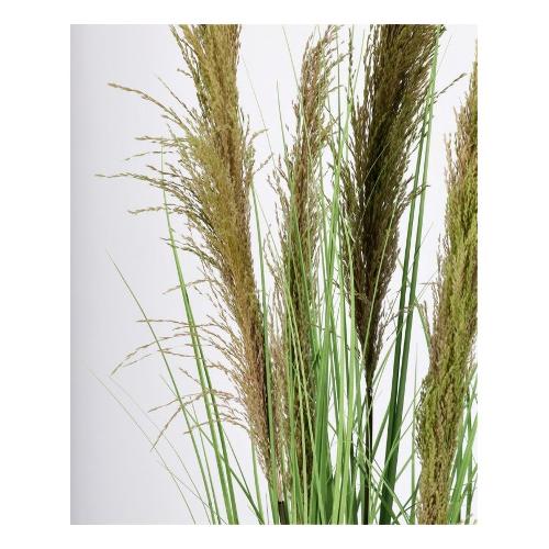 Fiore in ciuffi naturali, stelo in metallo e pvc, erba in pvc, vaso in plastica, contenuto vaso in cemento ø70x145h
