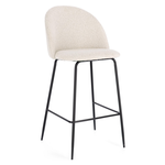 Gambe in acciaio, cromatura color nero. Imbottitura in schiuma poliuretanica densità 18kg/m3. Rivestimento in 95% Poliestere 5% Acrilico effetto bouclé