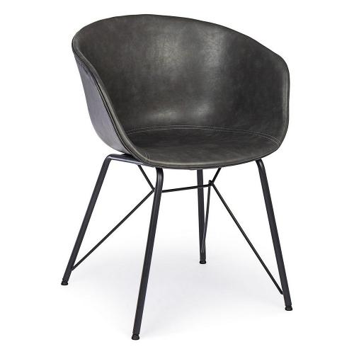Gambe in acciaio verniciato a polvere epossidica. Seduta in Polipropilene (pp) rivestito in similpelle