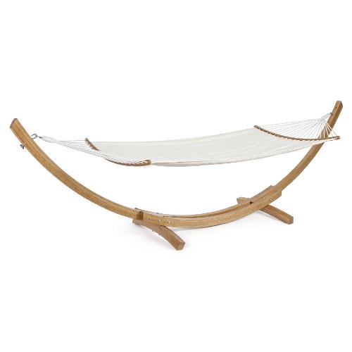 Struttura in legno di eucalipto 60x80mm finitura a base di nitrocellulosa. Telo 120x210 cm in tessuto trapuntato Spun poly (300 gr/mq). Max portata:200kg