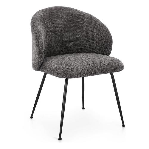 Struttura in compensato. Gambe in acciaio verniciato a polvere. Imbottitura in schiuma poliuretanica densità 22 kg/m3. Rivestimento in Poliestere effetto ciniglia