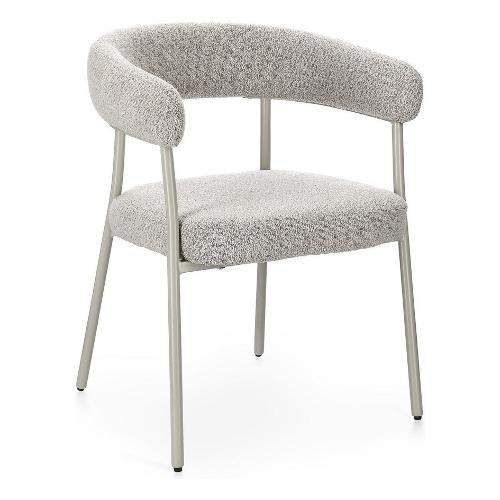 Struttura in compensato. Gambe in acciaio verniciato a polvere. Imbottitura in schiuma poliuretanica densità 22 kg/m3. Rivestimento in Poliestere effetto bouclé