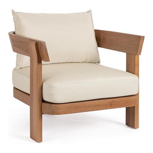 Struttura in in teak- svlk (legno certificato proveniente da foreste sostenibili), finitura finale a base d'acqua. Cuscini sfoderabili in tessuto idrorepellente sunproof Olefin (100%polipropilene). Il teak è un legno ricco di olii. Con il passare del tempo, questi olii, per un processo naturale, risalgono in superficie e possono macchiare eventuali cuscini a diretto contatto con il legno