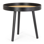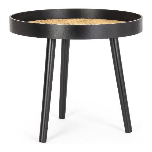 Piano in MDF con inserti in Rattan. Gambe in legno di pino. Finitura a base di nitrocellulosa