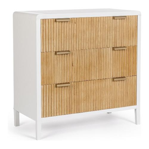CHARLEY Cassettiera 3 Cassetti Bianco e Naturale (80cm)