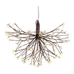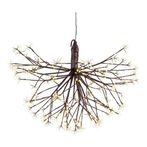 Sfera fuoco d'artificio 900microled. Luce classic. Struttura in colore marrone, filo nero. Lunghezza cavo di alimentazione 5mt. Distanza led 10cm. Dotato di presa schuko. Solo per uso interno. Con trasformatore 31v/6w. In scatola bianca con etichetta colorata
