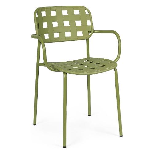 Struttura in acciaio (trattato per esterno tramite fosfatazione) e verniciato a polvere (Poliestere). Seduta e schienale in Polipropilene, resistente ai raggi uv