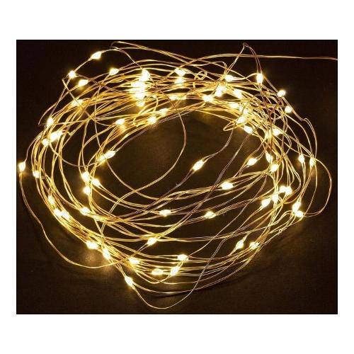 Catena 40 microled, luce classic, lunghezza totale filo 4,20mt, lunghezza cavo di alimentazione 0,3m, lunghezza filo luci 3,90mt, distanza led 10cm. Per uso interno ip20. Con pvc box. Funziona a batteria 3xaa non incluse