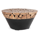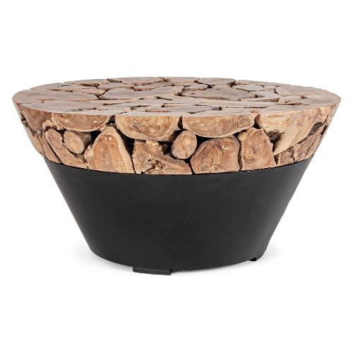 Piano in radici di teak con finitura a base d'acqua, base in acciaio verniciato a polvere epossidica. Le forme create dal legno sono solo indicative, tutti i prodotti saranno diversi l'uno dall'altro