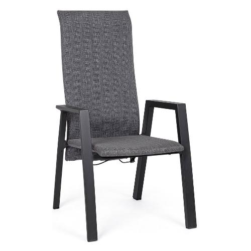 Struttura in alluminio verniciata a polvere (Poliestere). Schienale e seduta rivestiti con tessuto idrorepellente misto (70% Textilene e 30% Olefin). Imbottitura per esterno fast dry foam. Schienale reclinabile in libera posizione. Viteria in acciaio inossidabile