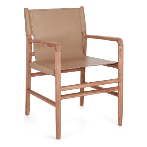 Legno teak, finitura con vernice a base d'acqua. Seduta e schienale rivestiti in vera pelle (pieno fiore)
