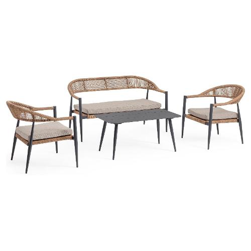 Set da esterno alluminio, fibra sintetica, poliestere JANDIA 4 posti Antracite e Naturale 0665025